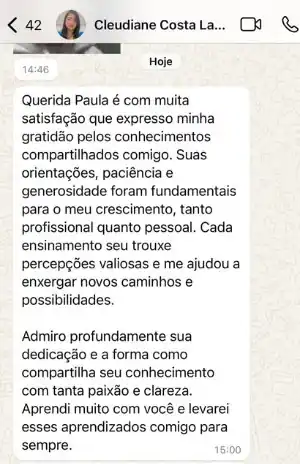 Atuo como mentora, terapeuta, palestrante e professora na área do desenvolvimento pessoal e profissional. Ao longo da minha trajetória, já acompanhei mais de 1.500 pessoas em processos de transformação com base em um método estruturado, que une clareza, propósito e estratégias práticas para a vida real.
